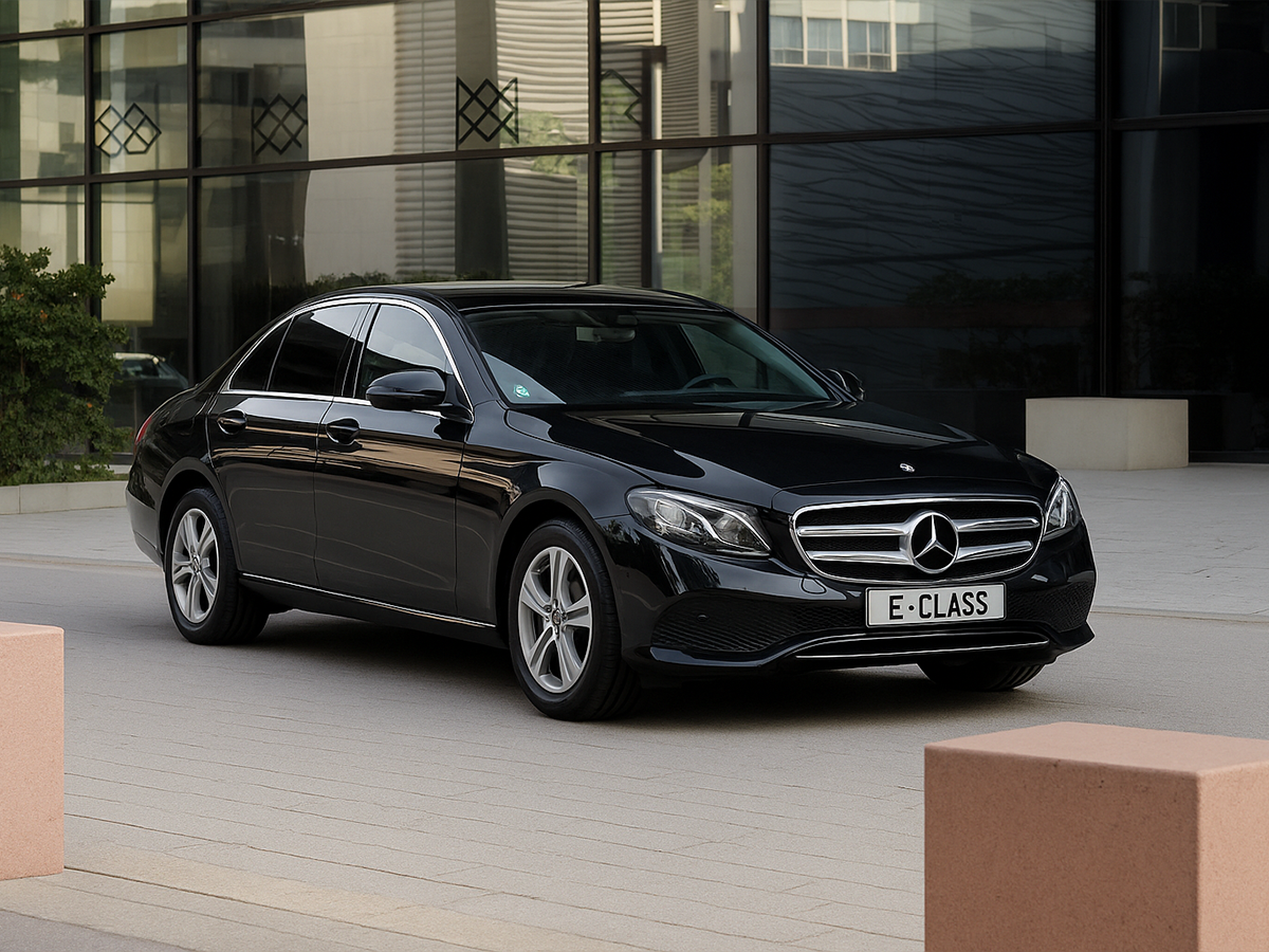 Die Mercedes E-Klasse ist der Inbegriff des stilvollen Business-Transports. Sie bietet Komfort, Technologie und eine ruhige Fahrt – perfekt für den professionellen Auftritt.